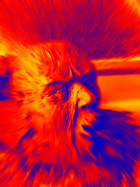 It is on cardboard i wanted to make a sacred object. The figure solidifies into churning patterns of the subconscious and from his third eye and the third eyes of the archetypes that make up its identity, rich blue plasma bubbles create the altered and succulent higher reality.