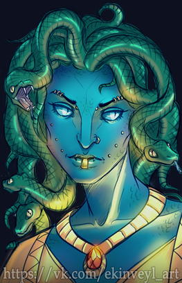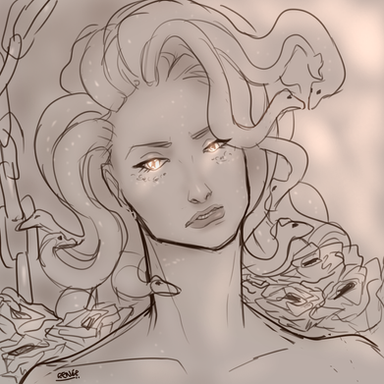 A very quick portrait for a girl's character on an Eldarya Discord RPG. I don't know why, but I got inspired by drawing her beautiful gorgon.