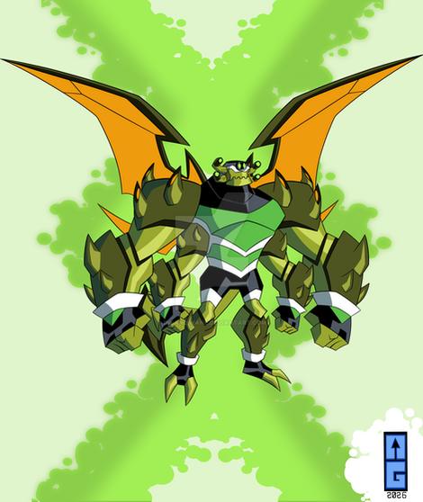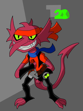Exactly like Ben's just he has magenta skin (Like Jury Rigg, not Ultimate, used by Ben), red eyes, suit and Ultimatrix.