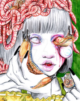 Thanks, it's original meaning was about herpes but I thought it fit more with allergies, lol. Well it could go both ways I guess. Uhhh it started out as kind of a self portrait kind of thing but then I just switched it entirely. I don't have piercings and am very plain looking, lol.
