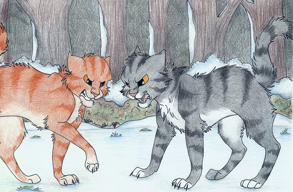 "I suppose you're right," Brambleclaw sighed. "But for Starclan's sake, be a bit more careful next time.""She will be." Ashfur sprang to Squirrelflight's defense again, unaware of the furious look she gave him this time. She was even angrier when she noticed a surprised glance from Sandstorm, as if her mother couldn't believe she was depending on Ashfur for protection. "Anyway, Brambleclaw," the gray tomcat went on, "it's not your place to tell her what to do."