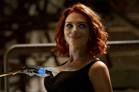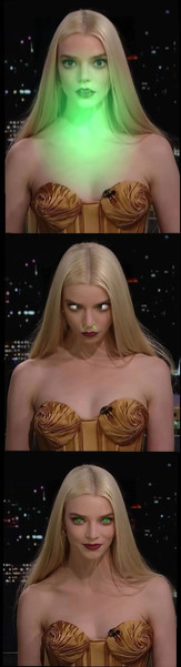 The green gaseous form of the demon contrasts her dress, lipstick and hair so well. And again, she's just more proof that all hot women only look sexier when there's someone else using their beautiful bodies.