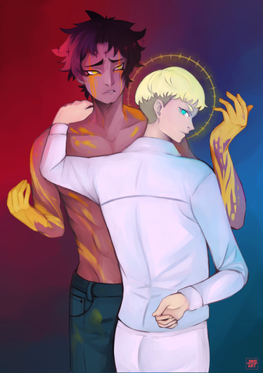 Yesss!! The expressions are on point- again- I can definitely see emotion in Reigen's eyes! I love the lighting of both sets of wings as well- and the whole piece goes together pretty nicely! I love how Reigen's taking him... under his wing