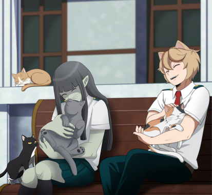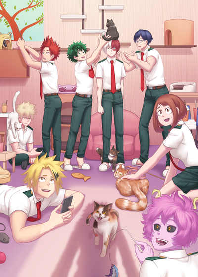 While struggling a bit with picking an idea to draw I thought of some of the MHA characters riding a cat... for some reason... xDIt kinda exploded from there and I started thinking of reasons how that could happen.