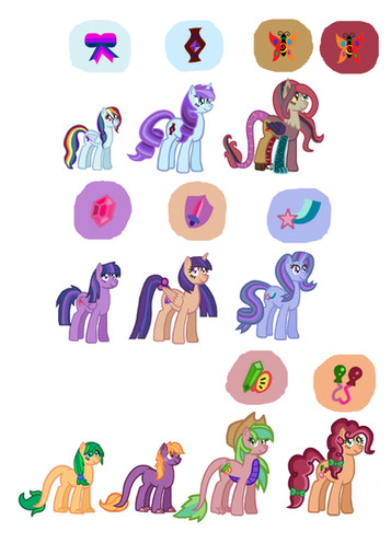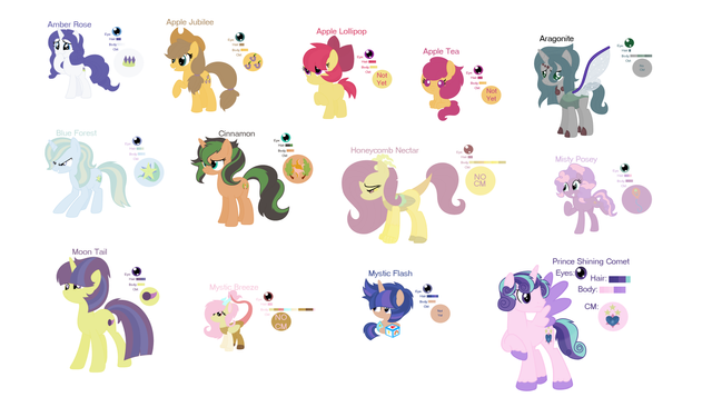 HUGE THANKS TO EVERYONE LISTED ABOVE! Your vectors were all super handy in deciding the looks and colors of my designs, many of the ponies you see there were made by color picking and blending from your beautifully colored vectors.