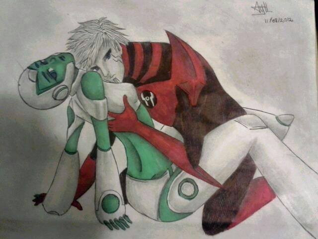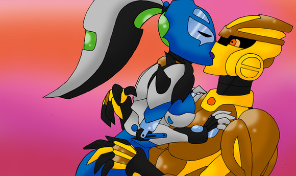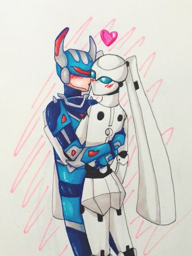 Yeah, those crazy kids just need to kiss and make up already, forget all that cosmic struggle, robots & fleshies don't mix crap and just KISS ALREADY! GAH! XD
