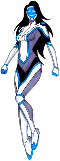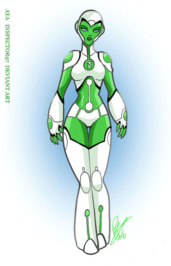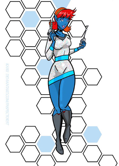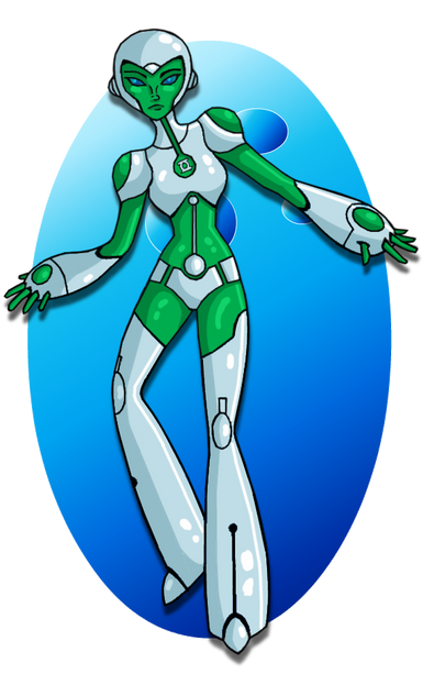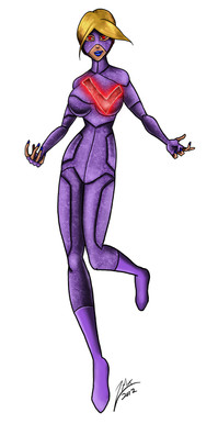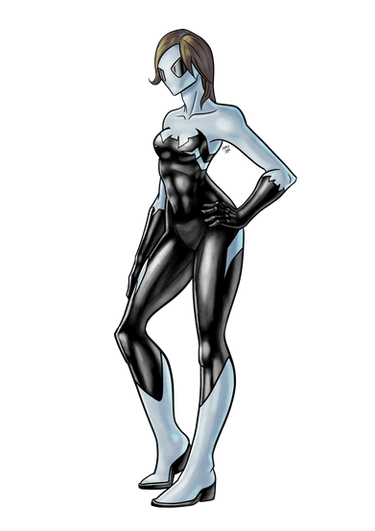 Cool character, and great artwork. Β Love the outfit, especially the alien face on her chest.
