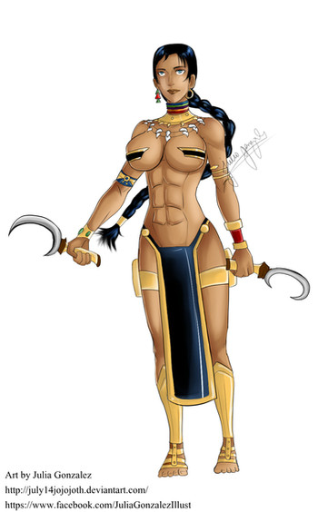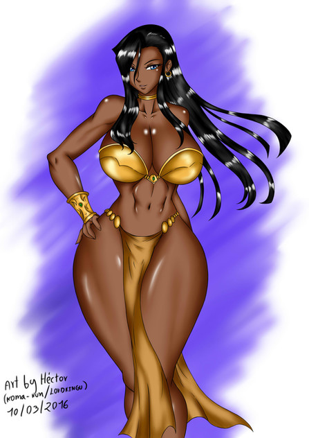 Ah, I see. I like the design, pretty exotic. Will have to agree with you regarding her bust though. I don't mind a large chest if it's proportional to the characters size. Still, just my opinion.