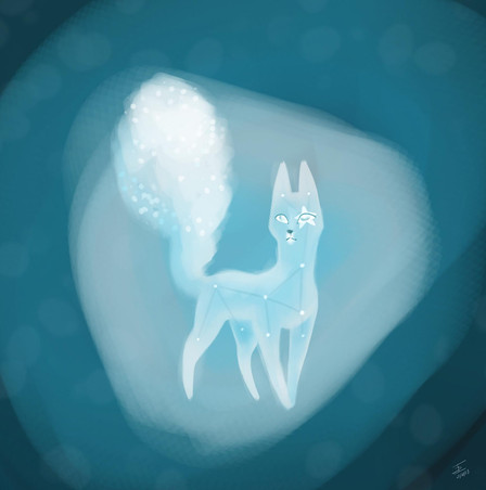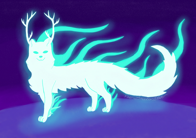 This is what the ghost fox looks like in a role-play with me and Espioboid . First time drawing a full body fox, giving this drawing more of practice and fun. Drawing and giving details of what they look like.Hope you enjoy it. <3