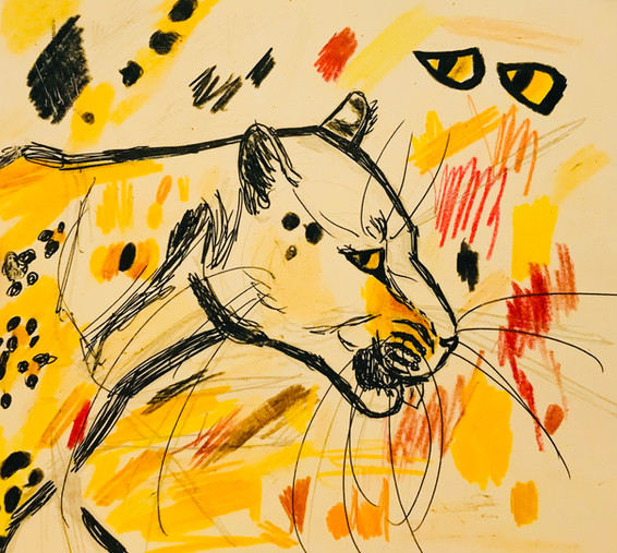 Part of a series of tigers painted with a limited palette.Using Permanent Rose and Ultramarine watercolours.