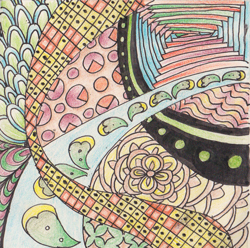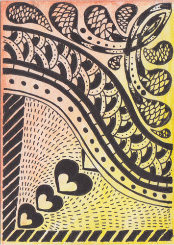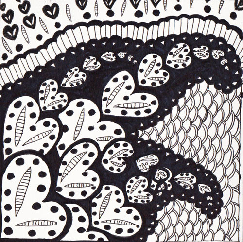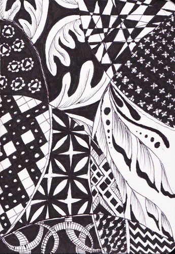 Decided to mix it up a bit and draw something more than a couple of random lines to work around.The pattern behind the hand is the reverse of Tangle 6
