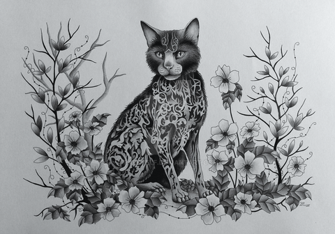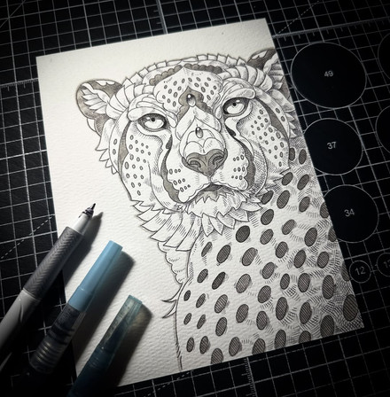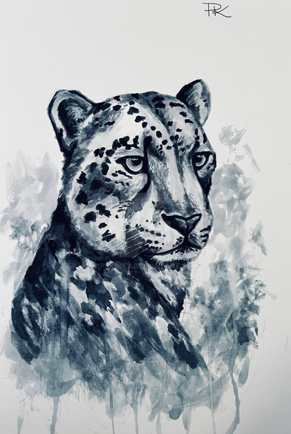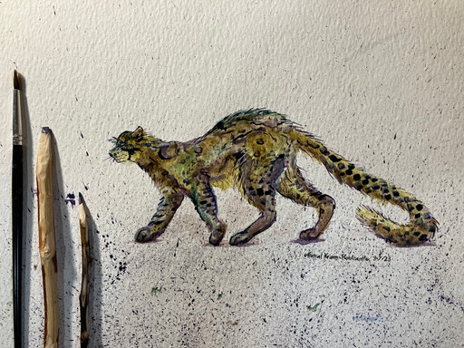 Third in line in a series of tigers painted with limited colours.Sap Green and Gamboge watercolours wit light green fineliner.
