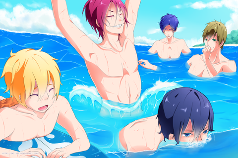 This definitely has to be one of the prettiest Free!Arts The shiny and clear effect of the colors is amazing. The water and the sky look so beautiful; it creates the vibe of a fresh summerday. And the boys, you drew them perfectlyΒ