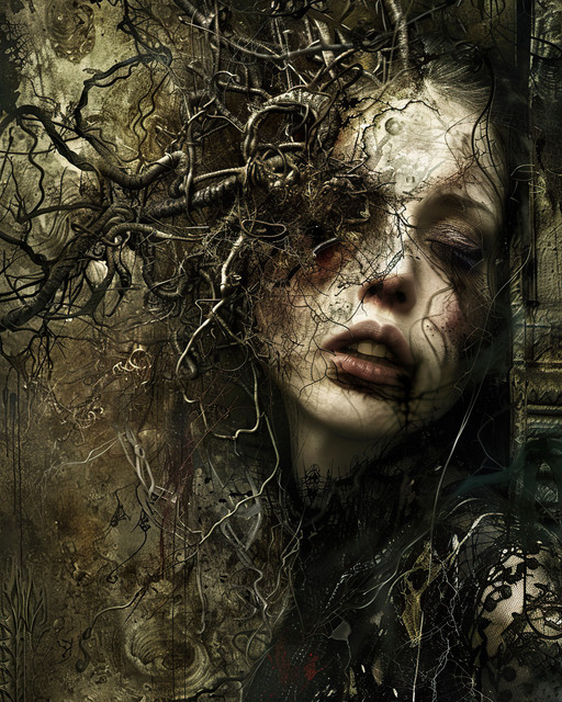 Looks really neat. I love the roots coming out of her hair, that looks real. Not too crazy about the ones on her forehead as they don't look as realistic. Good luck in the contest, hun, this is a great piece