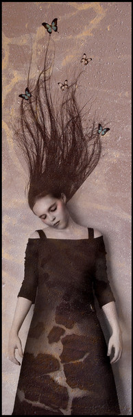 This is a very beautiful piece. I like her hair as it looks it is either flouting in water or blowing in wind but at ground level like sand blows along but tends to skim the surface. Great choice of colours and face too.