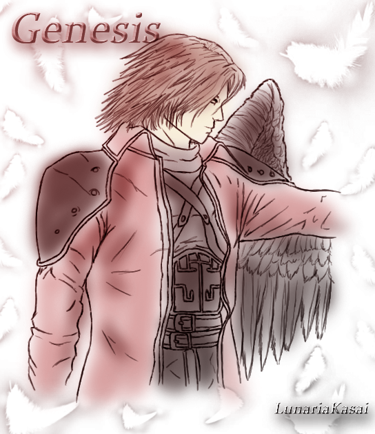 I promised :=Lioneh: for a good long while that I would work on Genesis and she was paitent enough to wait so i kept my word. Thanks to rendering in 3D studio Max and Photoshop, I was able to come through. The hardest part about him was his wing. It was soooooooo long! I wasn't sure how to rig wings, but i figured a way. I just need to close it. Did the best I could. Hope you like.I will have a lot more stuff up soon, just need some more time. Personally i prefure Digital Genesis over Gachet Cosplay even though his design is based off him. Just looks better to me.