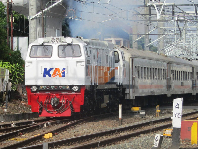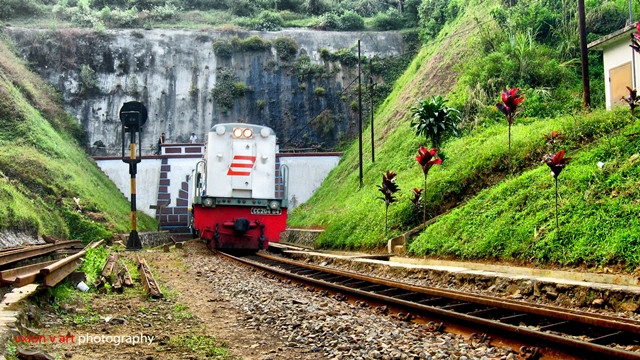A YDM4 locomotive pulling a southbound express passenger train from Sentral Kuala Lumpur to Singapore.It was raining heavily when I took this pic. Fortunately, I was sheltered by the gatekeeper's hut.
