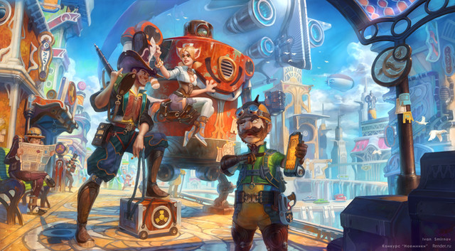 Wow I'm having a hard time trying to find the correct words to describe this. I don't want to say just say that it looks awesome. The light is really interesting and I absolutely adore all the steampunk stuff that's just lying there. Anyway, what I mean is that I really like it and it made come back a couple of times to look at it again. Really wonderfull work