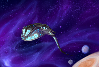 An aquatic Alien that is radial symmetric this fictional creature could be seen swimming the abyssal waters of Planet Aether.Related content