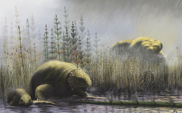 In a dense swamp a great sludge sulker sunbathes, taking advantage of one of the Aether's few cloudless days it will see this year. What appears to be its companion lurks in the distance, its surfaces for air after after snorkeling through the dense algal blooms its mouth trawling through the water to filter feed.Read more about Sludge Sulkers at Planet Aether: sites.google.com/view/planet-a…
