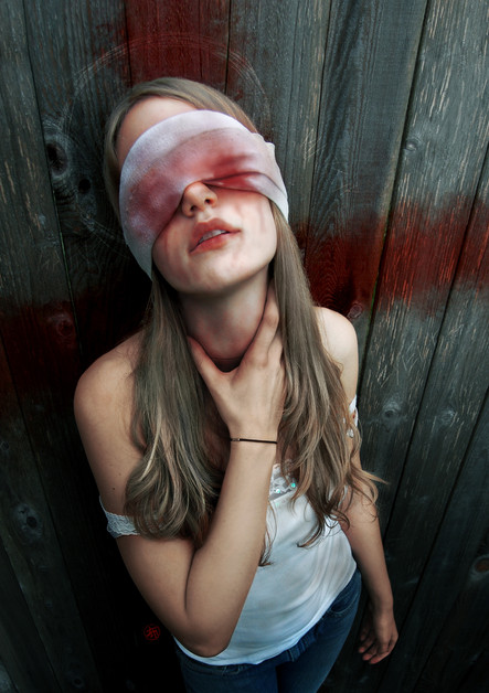 Blindfolded in preperation for her date with the guillotine, she cannot stop imagining the blade slicing through her neck.