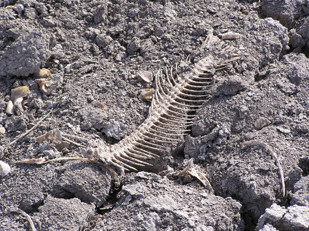 We're having a dry season, and a lake we drive past every week is completely dried up, so I took the opptournity to shoot some photos inside the lake. I liked the tecture of the lake bed, and what you see is what it is. Once it got onto my compy, I debated wether or not to put it on a grayscale, but I just left it alone. There's some fish skeletons I might include later. PLEASE TELL ME WHAT YOU THINK! (on this picty.)photo (c) to me.