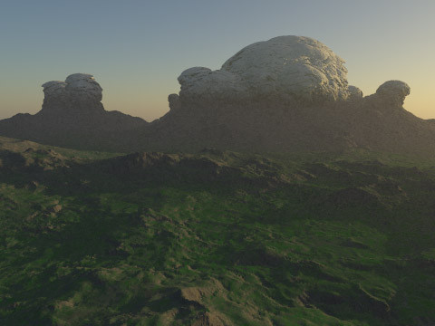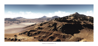 Something I cooked up in terragen. Thought it was pretty nice, I'm still learning on surface maps, trying to hone my technique. I just got my hands on the surface map guide and have learned a bit. I need to find a better way to make a bigger image with the unregistered version. Currently, I've been taking four shots more or less so that I can line them up and make them one image, but there are huge seams, and I havent quite got it ironed out, hence the border and contrast.Related content