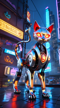 Created with Leonardo.AIPrompt: A anime cyberpunk cat with a robotic tail, navigating the crowded streets of Hong Kong.
