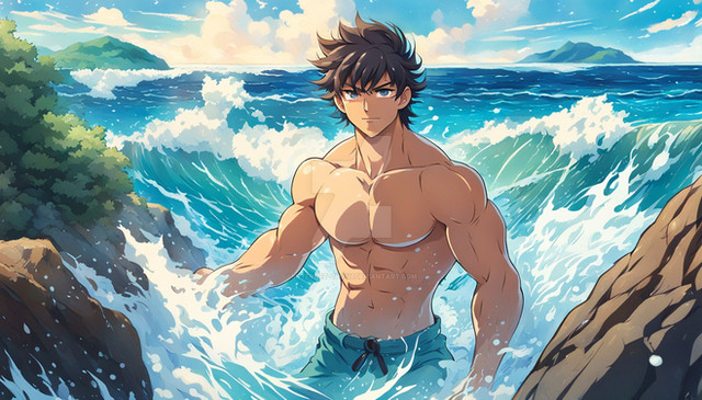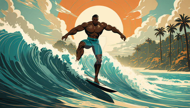 #digitalart #beach #sea #illustrator #athlete #muscle #muscles #muscular #surf #surfer #surfing #muscularman #muscularmen #tropical_beach #muscular_man #tropical_island #muscular_men