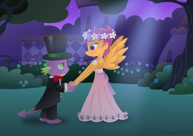 But Prince Spike and Scootaloo were already waltzing in the middle of the crowd,