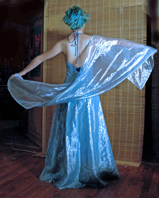 Semi-closeup of some of the beading on the sleeve and the ridiculous amount of eye makeup needed to make me a proper Lord of HadesPhoto by