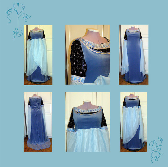 As you can see, the costume is far more interesting from the back than from the front. It took forever to do all that applique, especially since no sewing machine likes the conbination of Heat n Bond, confettidot fabric and sequin trim.