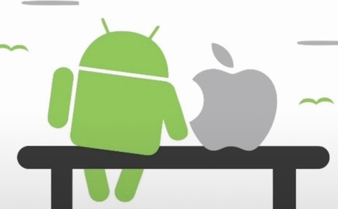 You should not use DA watermark, or any watermark, android logo and apple logo are not yours.