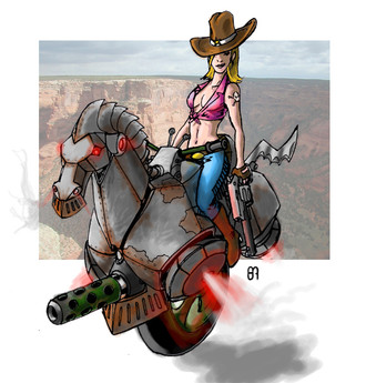 Another version of Rat TracThe tractor was inspired by the Hot Wheels toy "Dragtor". And I used a photo taken by Ama Lea ( ~CrooshxPhotos ) as a reference for the girl, the photo was called "Yee Haw". [link]