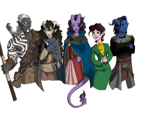 Finished a real fun commission for one of my friends! He commissioned me to draw his Dungeons and Dragons party. It's so much fun to draw D&D characters, they can be so unique and creative!Twitter: twitter.com/introvertedpeg/sta…
