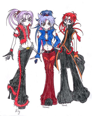 I love the shading in the hair of all of them. The one on the left is my favorite. Her outfit, pose, and anatomy are are so wonderful. Amazingly great work!