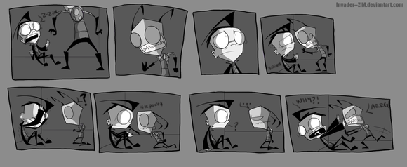 Dib, Dib honey I love you and all but stop being so scared and run! Or at least smack Zim with something just sop freezing and being a typical person in a horror movie!!!