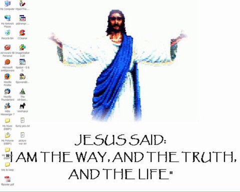 Heh heh, what an awesome Jesus wall paper! ^_^ Tis very funny! Yay for Jesus! A_A