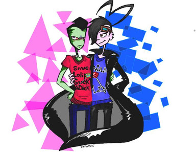 I love the pic...and if you just read the bits and peices of the rant it sound so...*cough* Gives Zadr fans ideas! I love it! And I think Zims blood should be pink...but I like blue too! ^^