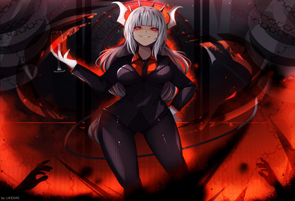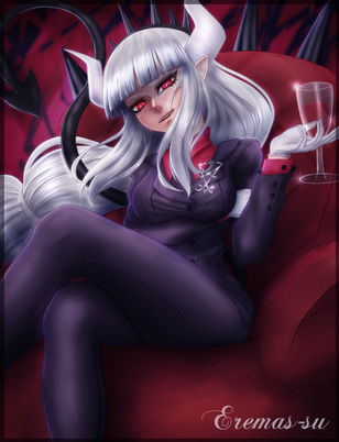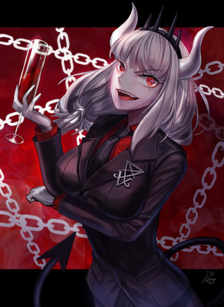 here is a fanart of the CEO of hell, Lucifer! She is just so cute...like all Helltaker girls