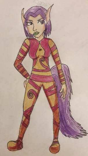 Rayman 2: The Great Escape just couldn't be complete without Ly the Fairy, and since Tourmaline is an alternative Birthstone for October, it was full steam ahead there! Unlike Globox, Ly gave me no trouble whatsoever with trying to draw her. She has a very humanoid design, but her tail and ears are what make her unique. Since purple and yellow are her two main colors, I thought it would be pretty nice to make use of the Bi-Color pun in that variety. Although, I think I could have done a bit better with the color selection...