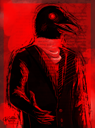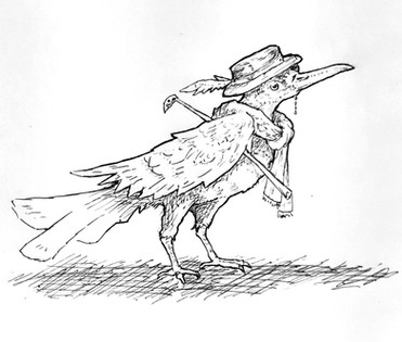When looking into different mythological creatures, I'm always fascinated by how so many regular animals influence such folklore. There is legend of a creature called the far-darrig, a bird-like being said to copy the cries and voices of people to lead travelers astray in a forest. It's been known that crows and birds of the crovidae family are highly intelligent and are able to copy the sounds they hear, and are likely to have fueled the far-darrig myth.This is my interpretation of a far-darrig. This character is clever, cunning, and conniving. They are distinguished by their little red hats, and their sense of fashion hidden under a cloak of feathers.