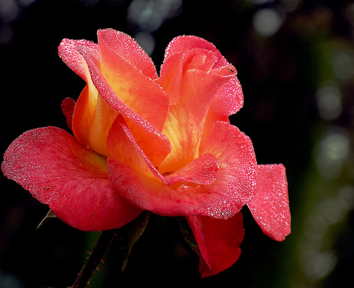 I could have sworn I had posted this picture, but as I was looking threw picture on here I saw that I had not.Maybe seven years ago (I honestly don't remember) I had taken a picture of this rose in the morning before heading off to school. It was very misty that morning and there was dewdrops covering everything outside. The sun was hitting the little droplets of water in such a way that it made this orange rose look like it was jeweled with gold.