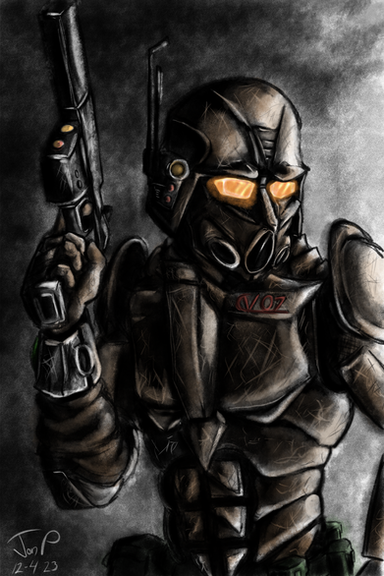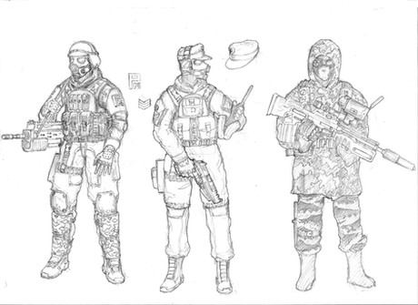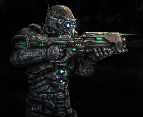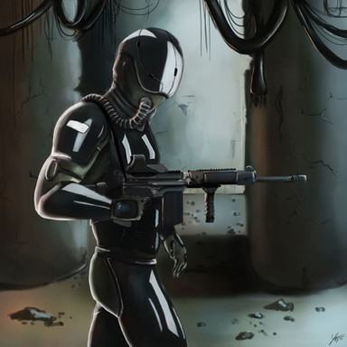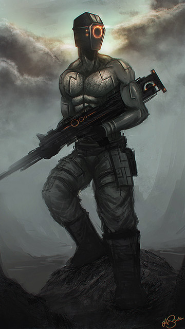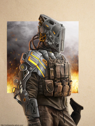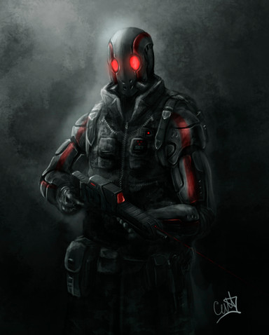 Futuristic ninja in cool looking gas mask and cool looking exoskeleton armor. I designed this dude 5 years ago when I was just a 11th grade student also Killzone and Metal Gear Solid inspired me a lot back then!of course, a good futuristic ninja soldier must have a gun that look like P90 which will +15% to Cool meter.