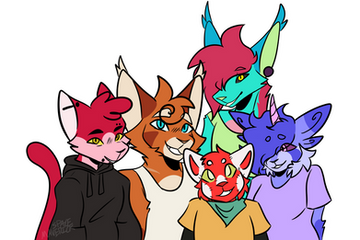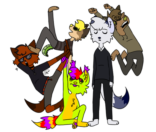left to right: djkaina, kludges, sully (mine), tobi707, ghettospaghetti, cabooseebooks, zaptagon, overdrive (not on dA), batnoise, grimm (mine), heiko (tobi's), and akafoxtail