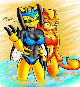 Infomation about her. i don't really talk about her much so i will now. Mitzy has grown up in the desert sands of an all bug world. mitzy was a part of a very poor tribe being harassed for years by other races for resources, mainly by the sand battle race. they have cut off most of the tribes water supply and for exchange want various things. this makes the sandarions very tense and high strung and will offer harsh punishments to those within the tribes that put them in danger to be cased out. one day on accident mitzy managed to loose a large amount of precious water only after messing up many other times before. mitzy is rather clumsy sometimes... eventually the tribe leader felt it was time for her to leave forever and to stop making things worse for everyone... the story continues from here cuz this is already long...
