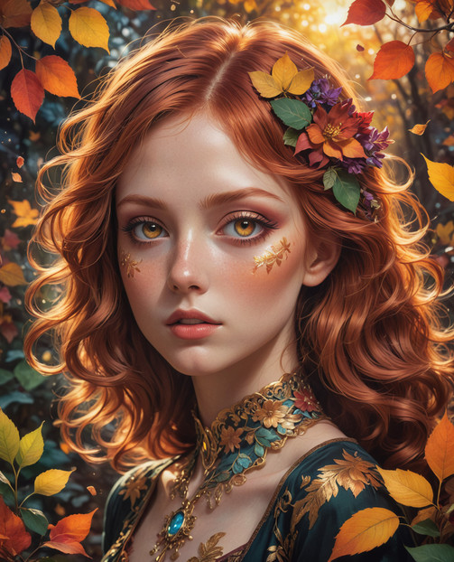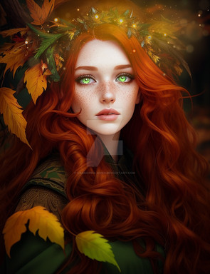 #ai #autumn #autumnforest #fantasy #fantasycharacter #fantasyforest #forest #forestspirit #naturespirit #redhead #aigenerated