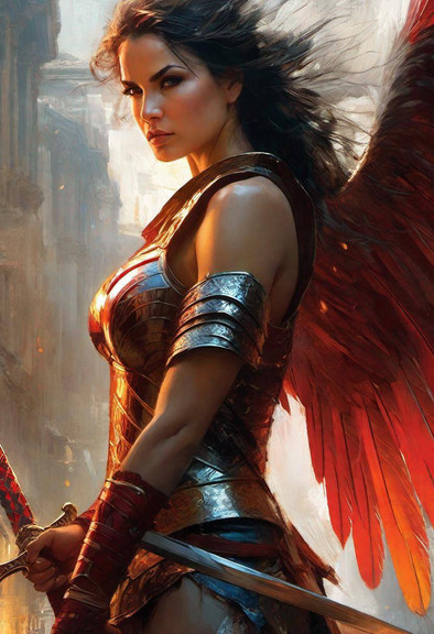 #ai #angel #beauty #fantasy #fantasyart #fantasycharacter #femalewarrior #warriorwoman #winged #wingedcharacter #wingedgirl #aigenerated