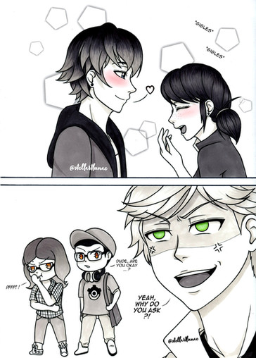 Loosy t-shirts club. No offence, but I just can't believe this is what Mari've worn, when Adrien... actually asked her out. Guess... she really was in a hurry back in her room.