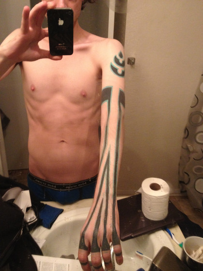 I drew this on my hand one day. I used to do this alot. On myself and others using sharpys. Sometimes they were collored sometimes they were just black.Related content
